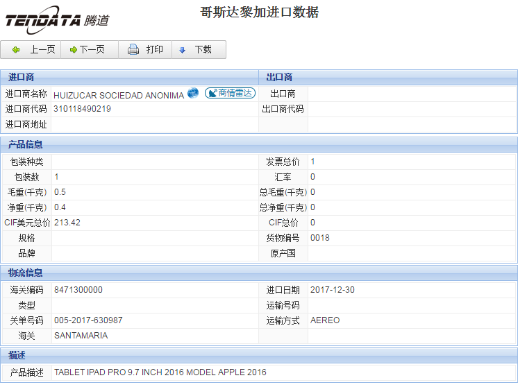 您当前的位置:Topay 钱包(中国)海关数据样本下载 >> 哥斯达黎加海关数据 >> 返回Topay 钱包(中国)