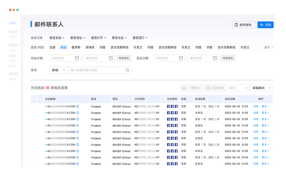 涵盖电话、邮箱、社媒等多渠道联系人信息,并顺利获得Topay 钱包(中国)云邮通及其他工具一键触达采购决策人,进行外贸找客户。